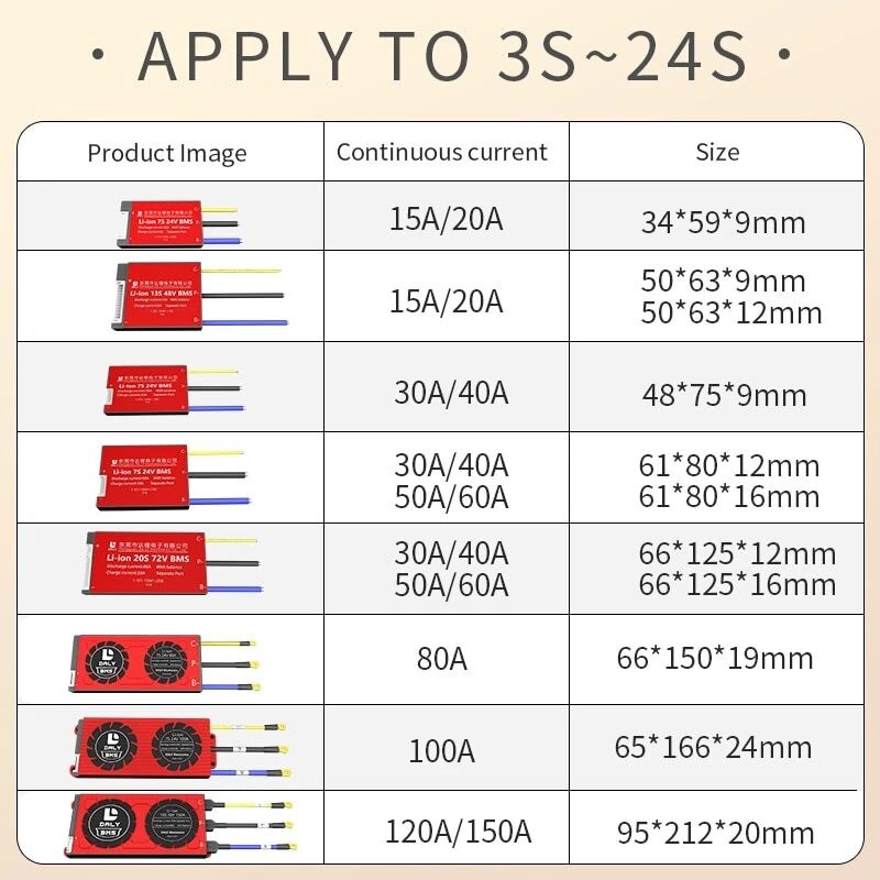 The Daly 60V BMS has a slim profile. Its 0.31 in (8 mm) thickness integrates without adding bulk. The entire device's consumption is less than 50uA, making it extremely energy efficient.